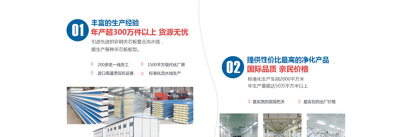 蘇州巨百凈化產(chǎn)品有限公司是一家從事研發(fā)、銷售、凈化彩鋼夾芯板、凈化產(chǎn)品及設(shè)備的公司。擁有全新機(jī)制彩鋼夾芯板生產(chǎn)線的合作伙伴, 日均產(chǎn)量可達(dá)6000平方,以提供凈化工程配套產(chǎn)品的設(shè)計(jì)、制作、安裝、維護(hù)。經(jīng)營(yíng)范圍包括凈化彩鋼板、凈化配件、凈化產(chǎn)品、凈化燈具、凈化鋁型材銷售,凈化工程、無(wú)塵車間、實(shí)驗(yàn)室項(xiàng)目的設(shè)計(jì)、安裝和信息咨詢。主要銷售產(chǎn)品有凈化彩鋼板巖棉板、琉氧鎂板、中空玻鎂板、聚氨酯板、凈化燈、凈化鋁型材、凈化門、鋼質(zhì)門、FFU、凈化燈具、風(fēng)淋室、傳遞窗、凈化設(shè)備等,承攬各種潔凈房、實(shí)驗(yàn)室的設(shè)計(jì)、制作...